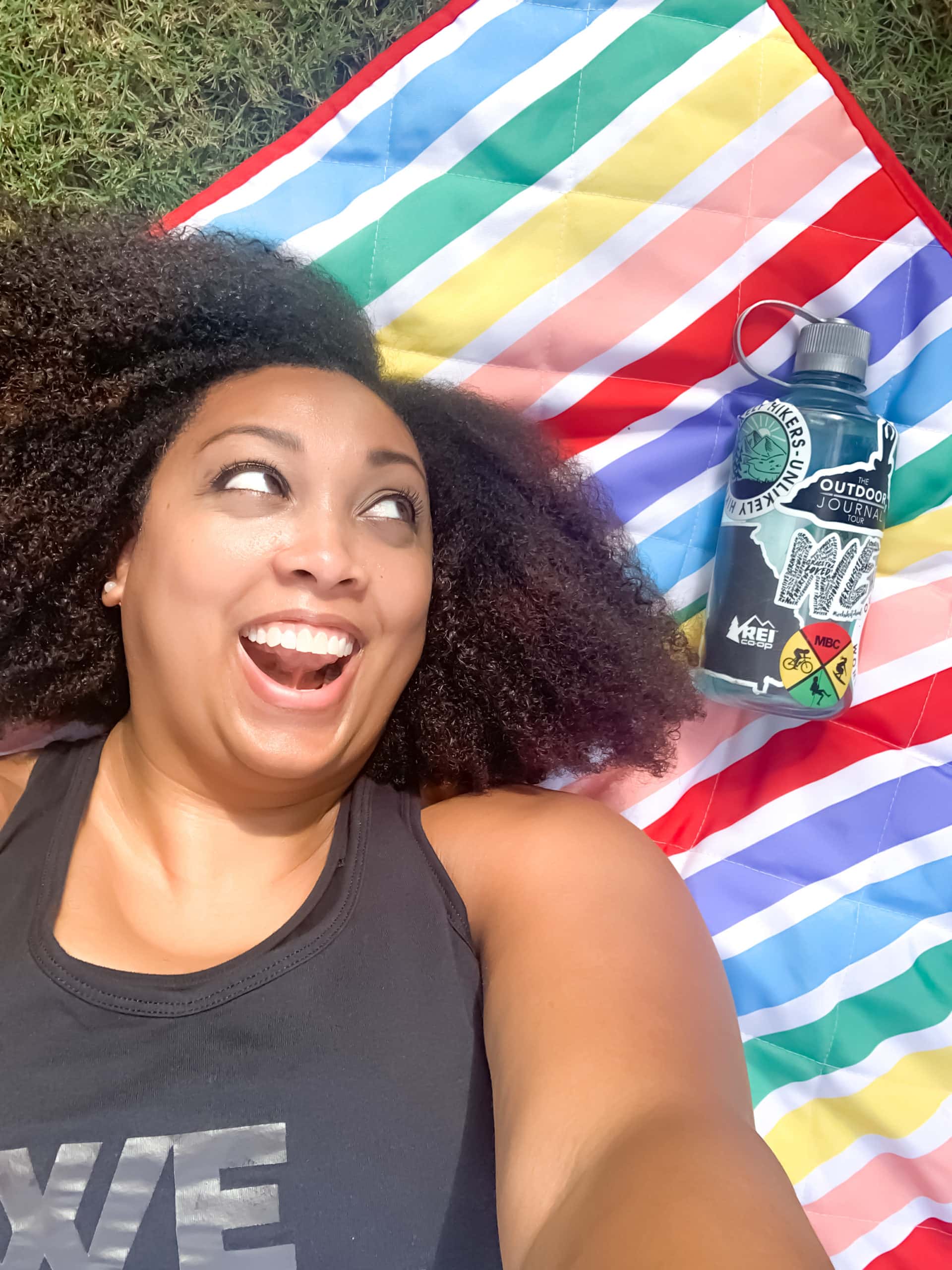 A: Water is essential, especially when you live in a hot and humid climate like Georgia. Michelle and I typically carry the wide-mouth 32-ounce bottle during events and day hikes. It provides us with the perfect amount of water to stay hydrated from start to finish. Plus, its ability to clip on our backpacks makes it easy to carry. Of course, we also love the adhesive surface that allows us to display all of our cool stickers from ours and other organizations we love and support. The stickers usually serve as a conversation piece/icebreaker for the women who join us at our events. It’s not uncommon for them to pull out their Nalgene bottles and give us a little sticker tour of their own.